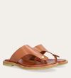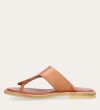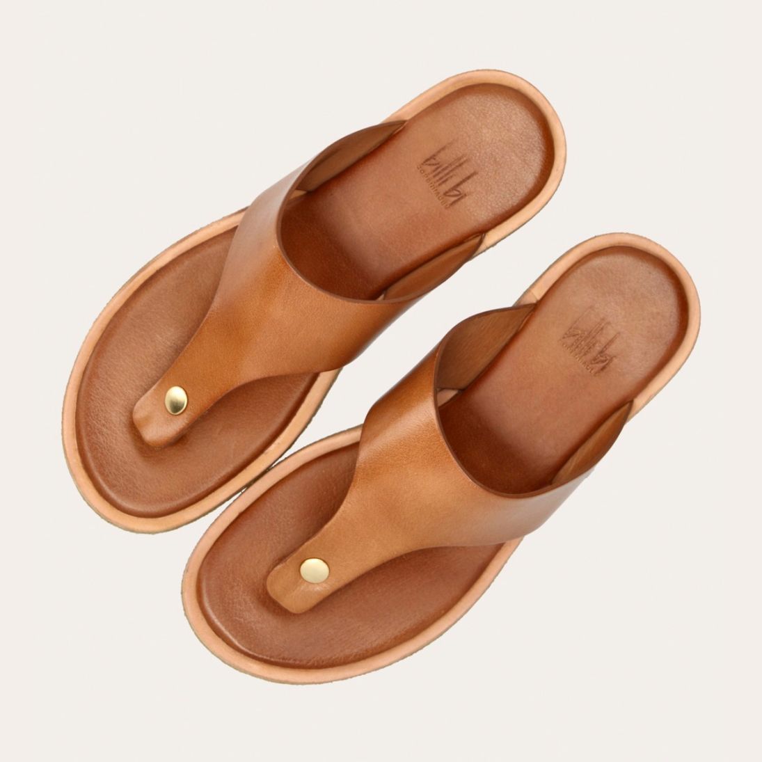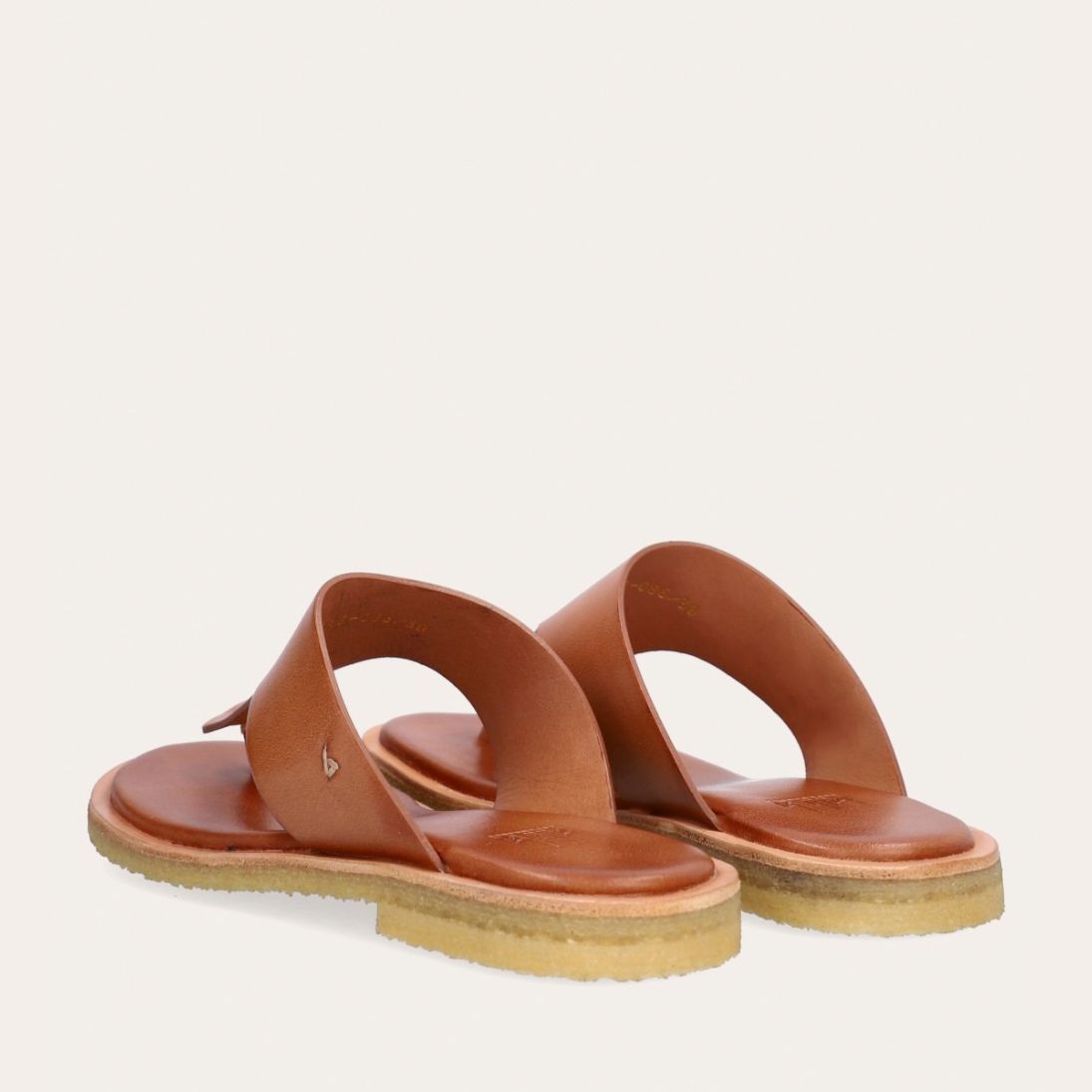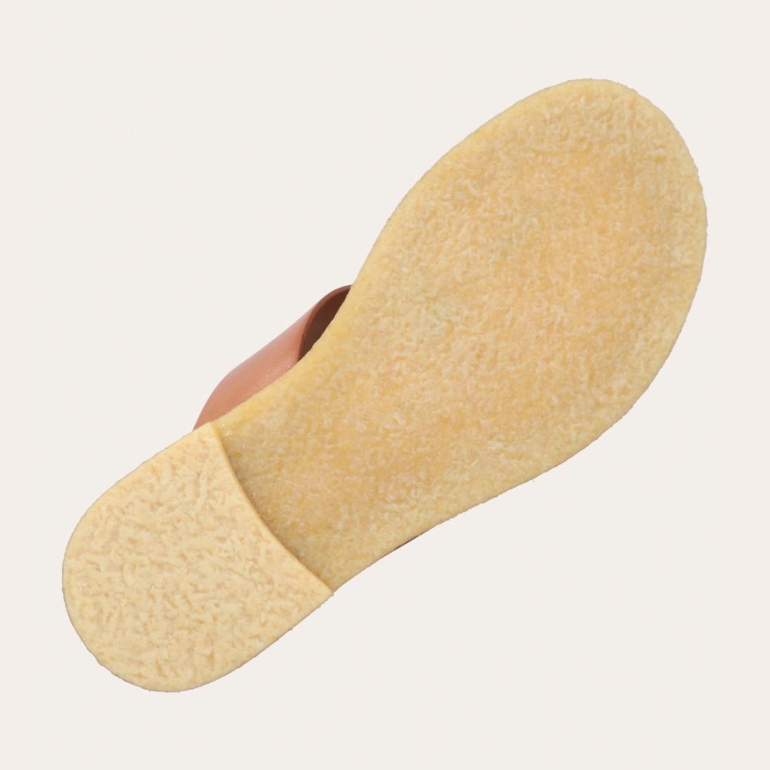 Håndlavet slip-on sandal udført i lysebrunt glat skind med en rund tå. Sandalen er designet med en tåstrop og en rågummisål for optimal komfort.